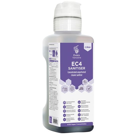 Evans EC4 Multi-Surface Cleaner and Disinfectant unperfumed, cleaner and disinfectant that kills bacteria, yeast, and has virucidal activity against enveloped viruses.